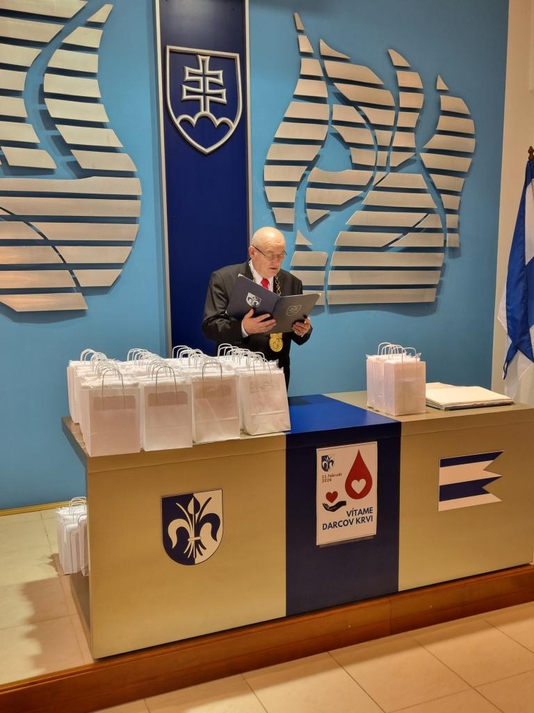 Starosta vo svojom príhovore ocenil nenahraditeľnosť darcov : „nakoľko jedinou metódou, ako získať krv, je darovať ju. Drieme vo vás snaha pomáhať, prejav ľudskosti, ale aj krásna rutina, či srdcová záležitosť. Prijmite moju veľkú vďaku a úctu. Želám vám najmä pevné zdravie, ktoré vám čo najdlhšie umožní byť síce neznámymi, ale o to vzácnejšími hrdinami dnešnej doby.“