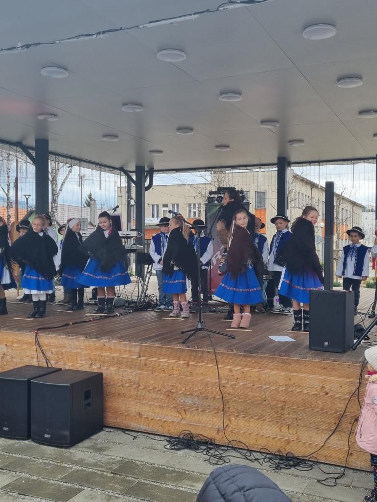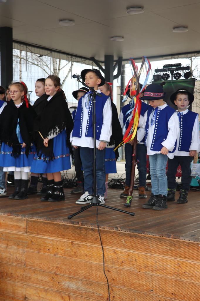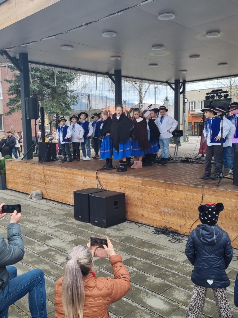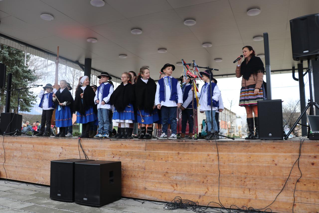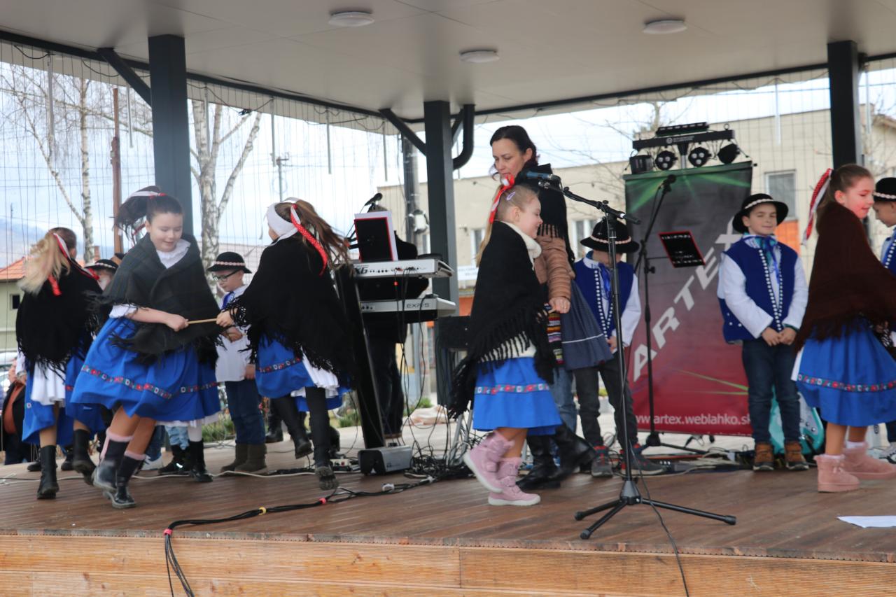 O oživenie tohto zvyku sa na vonkajšom pódiu premiérovo postarali žiaci zo ZŠ Beluša (2.B trieda) pod vedením p. učiteľky Moniky Fuskovej. Ich vystúpenie v ľudových odevoch bolo plné ľudových piesní, tancov a fašiangových vinšov. Zakončenie programu ich smútočným sprievodom s pochovaním basy dalo pomyselnú bodku za obdobím hojnosti a radosti.