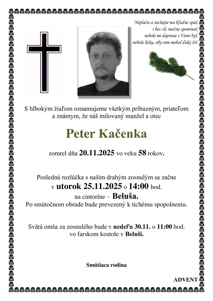 Kačenka Peter smútočné oznámenie