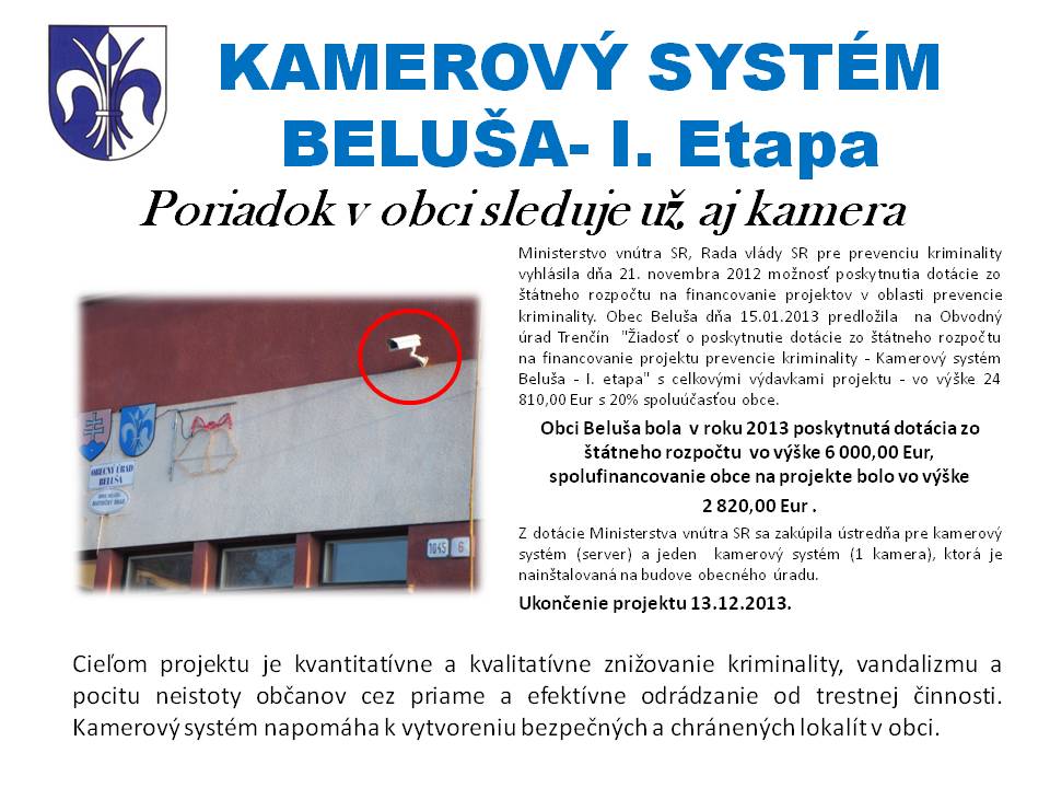 Kamerový systém Beluša- I.etapa