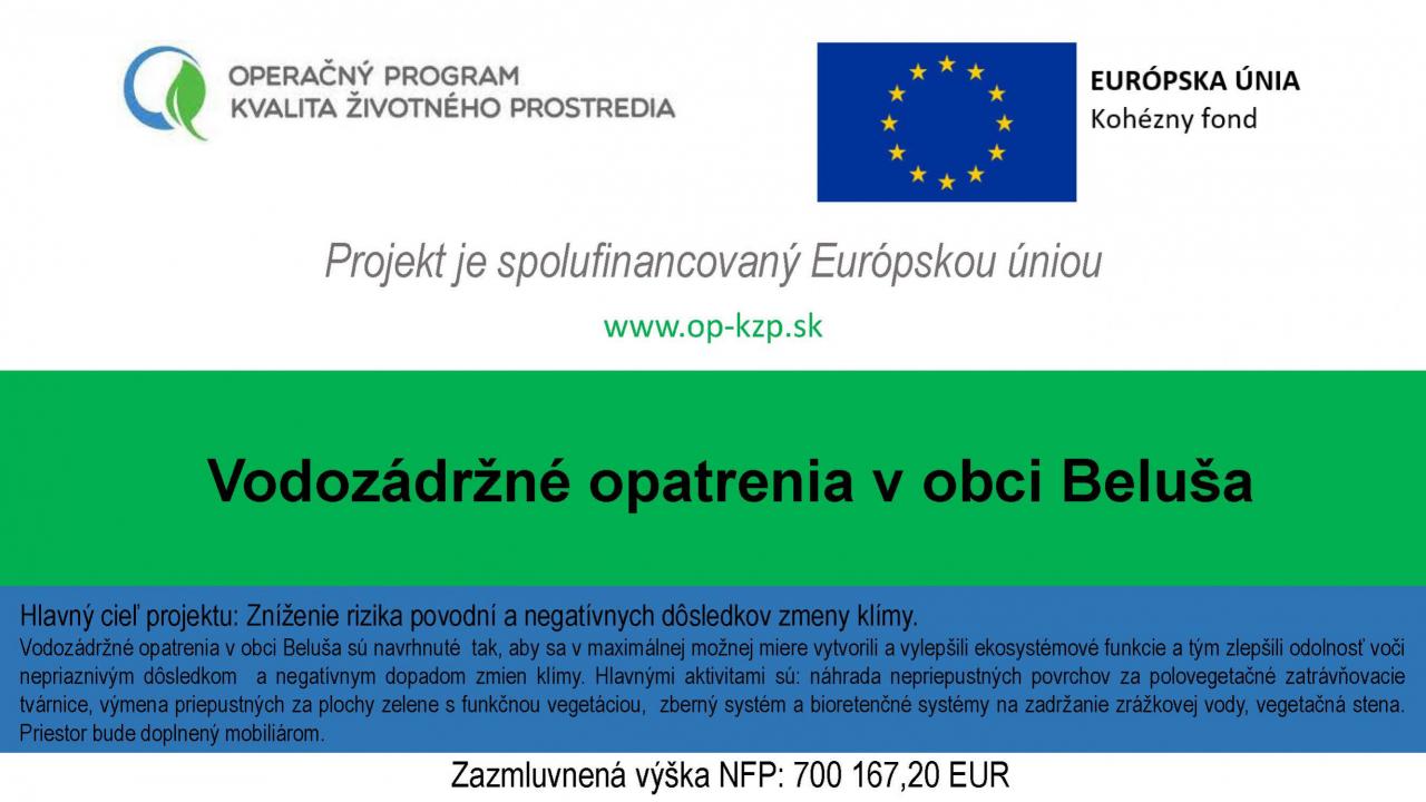 Vodozádržné opatrenia v obci Beluša sú navrhnuté tak, aby sa v maximálnej možnej miere vytvorili a vylepšili ekosystémové funkcie, a tým zlepšili odolnosť voči nepriaznivým dôsledkom zmeny klímy (adaptácia na suchá a letné horúčavy) a tiež eliminovali negatívne dopady zmeny klímy (mitigácia sucha a horúčav, zlepšenie mikrolímy, zníženie nárokov na zrážkovú kanalizáciu, zníženie výskytov záplav z dôvodu pretečenia kanalizácie).